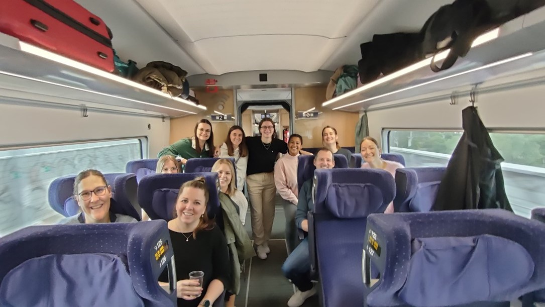 Pünktlich um 9.59 Uhr bestieg das F1 (inkl. Schwangere, Mamis, Verletzte und ex-Trainer, ) den Intercity in Richtung Hamburg. Zu diesem Zeitpunkt war die Zieldestination noch unbekannt. Während der kurzweiligen Fahrt wurden wir vom OK-Team gut verpflegt und unterhalten. Leider wurden wir von Freiburg mit Regen begrüsst, was aber unsere Gesprächsfreude im Tram nicht minderte. An dieser Stelle - sorry liebe ehemalige Mitfahrende. Nachdem die Zimmer bezogen wurden, ging es zum nächsten Surprise Programmpunkt – eine Weindegustation. Wir haben mehr über alternative Freiburger Weine bzw. Rebsorten gelernt und gutes Brot dazu gegessen. Ah und natürlich köstliche Weine probiert ߘ鮠Alkohol macht hungrig (noch mehr nach einem Apéro) also genossen wir ein sehr feines Abendessen in der Innenstadt. Gemütlich ging der erste Abend zu Ende.
