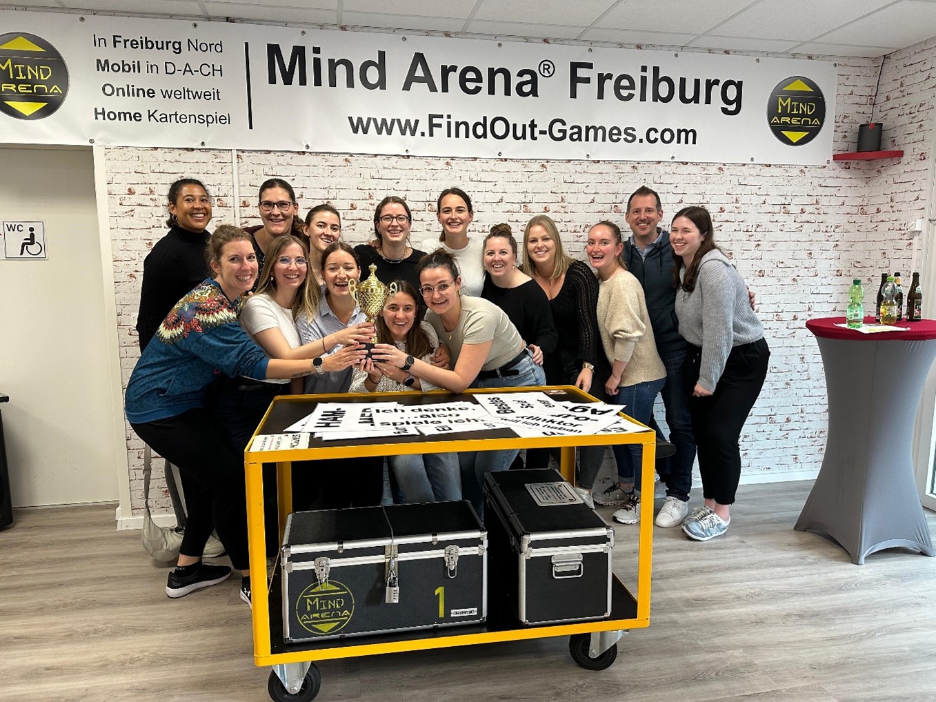 Die Nacht macht auch hungrig und so gingen wir ins Kaffee um die Ecke für ein leckeres Frühstück. Die geduldigsten unter uns wurden auf die Probe gestellt. Eine Wartezeit von min. 30min-1h war angesagt. Doch nachdem wir gegessen hatten, freuten wir uns auf den nächsten Programmpunkt. Zuerst dachten wir es sei eine Bierverkostung. Das Bier kam später ߘ鮠Jetzt waren unsere Köpfe und Teamwork gefragt. In der Mind Arena lösten wir Rätsel, lachten zusammen und siegten (zumindest ein Team). Das Siegerteam setzte sich gegen 2 andere Grün-Weiss Teams sowie zwei männliche Junggesellenabschiedsgruppen durch – nochmals herzliche Gratulation. Beim anschliessenden Apéro im Hotel wurden ein paar Tränen vergossen. Es war Beats letzter Saisonabschluss und wir wollten (und wollen) uns ganz herzlich für diese tolle Jahren bedanken. Wir werden dich sehr vermissen, Beat! Nach einer kurzen Informationsrunde zum «Schwäbetörle» sowie zum Befreier von Freiburg gingen wir gemeinsam essen. Es war köstlich. Köstlich waren auch die Cocktails in der nächsten Bar. Nach und nach gingen einige wieder ins Hotel für einen erholsamen Schlaf, während andere Freiburgs Nachtleben weiter erkundeten.